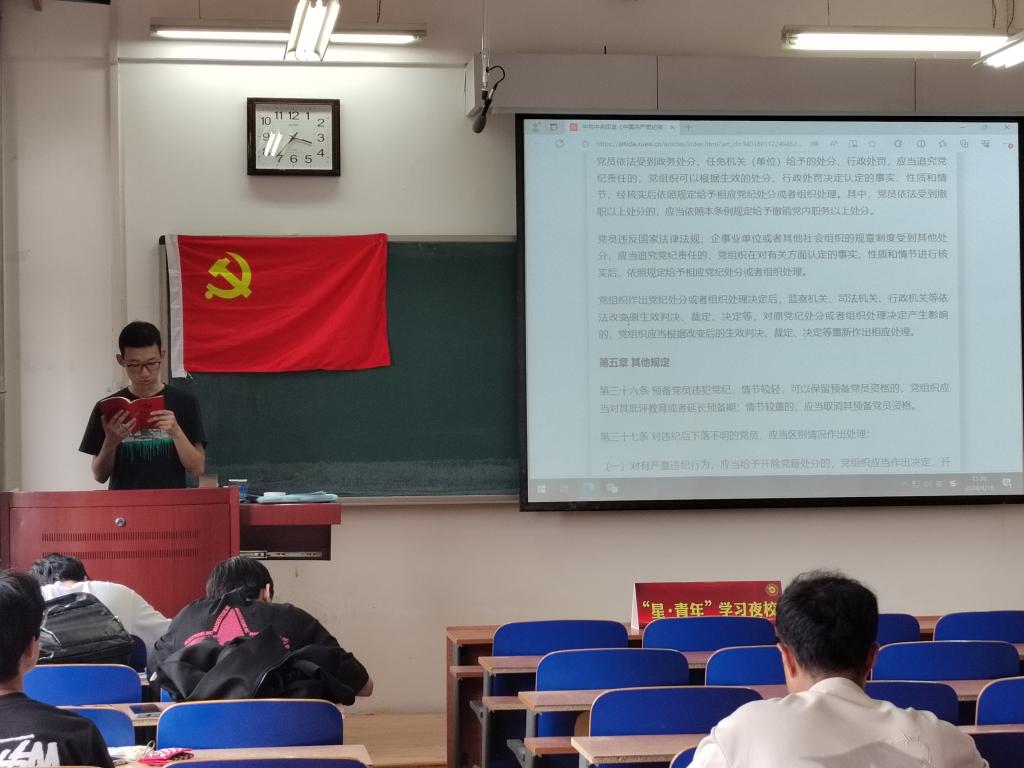 4月18日下午,按照党支部《中国共产党纪律处分条例》学习计划安排,四个员工支部通过“星·青年”员工党员学习夜校,开展了党纪学习教育“第一课”。党支部委员传达了刘志彧书记在公司党的建设工作领导小组(扩大)会议上的讲话精神和公司党委关于党纪学习教育启动会议精神,对开展党纪学习教育的意义、内涵等做了阐述。集中学习环节,各支部以党小组组长领学、成员带头研讨的形式,对《中国共产党纪律处分条例》总则部分进行了集中学习,并结合学习生活实际进行了讨论。