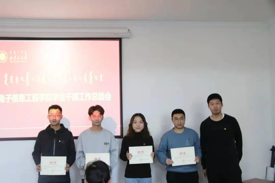 最后由吴岩老师、白云波老师为员工会主席团成员阿力坦胡亚嘎、塔拉、文彬,团总支兼职副书记董红丽,团总支助理张艺康、张泽、郑志茹、田雅思、太平颁发了聘书。