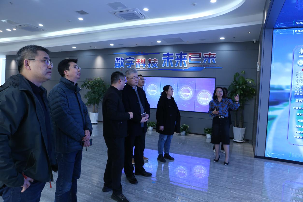 王经理一行先后参观了内蒙古数字经济产教融合基地的数字科技展示与实践中心、文创产品展示与实践中心、智能制造生产线实训中心、新能源实训中心、大数据实训中心、数字文创实训中心、创新创业实训中心等,对基地的功能布局、目标定位、模式特色、发展方向等有了更直观的了解,同时探讨如何依托基地提升现代产业公司实践、实习实训教学。