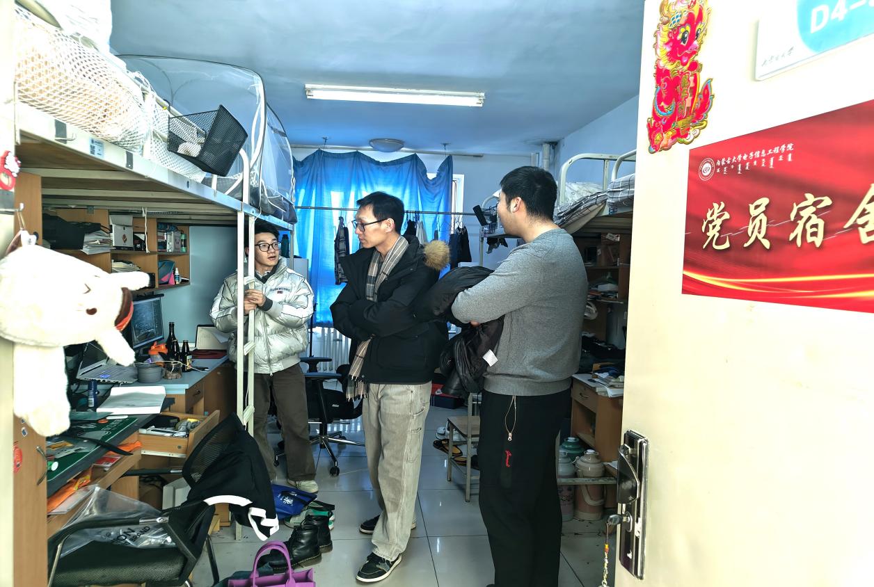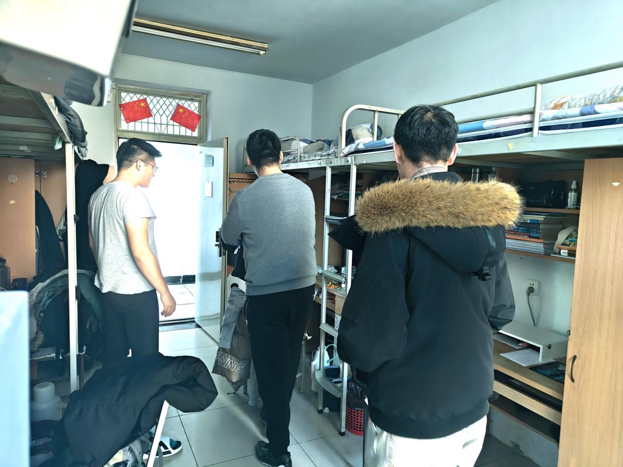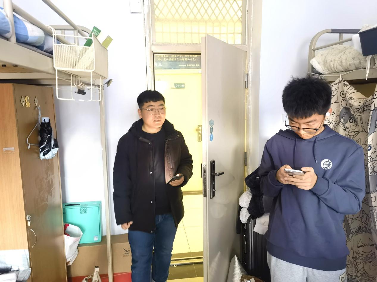 为进一步加强元旦期间员工宿舍安全管理,有效预防潜在安全风险,筑牢安全防线,2024年12月31日下午5:00,bg大游集团官方网站团委副书记兼学工办副主任白云波、本科生班主任庄明磊、辅导员段鹏飞对员工宿舍进行安全卫生检查。