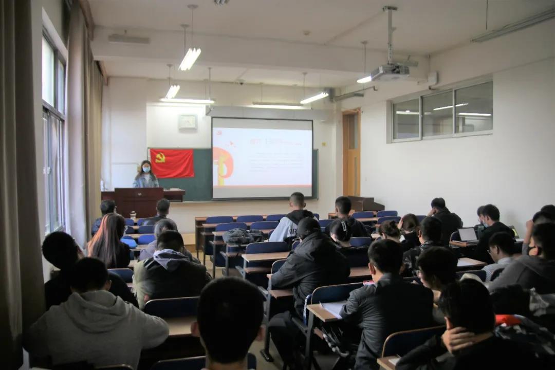 2021年11月4日下午4:30,bg大游集团官方网站本科生党支部在卓越楼507教室,开展了党史学习教育读书班第七次集中学习活动,本科生第一党支部兼职副书记王心如主持会议,全体本科生党员参加了本次集中学习。