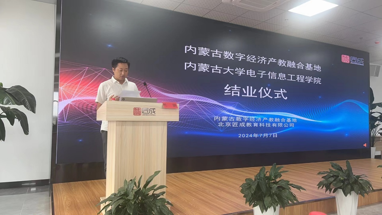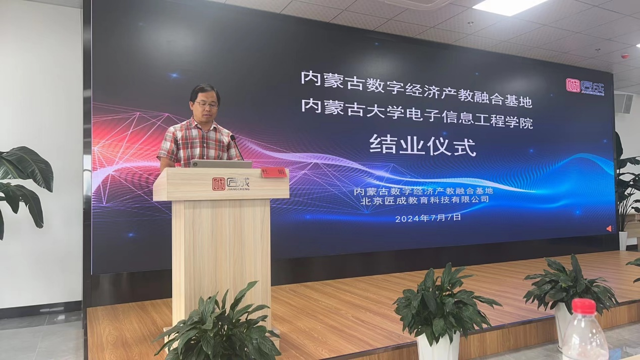 2024年7月7日,公司翁智副经理、实验管理中心阿音呼老师参加了此次实习的结业仪式,匠成基地执行董事长邓飞龙为优秀团队、优秀个人进行表彰并发放了培训证书。