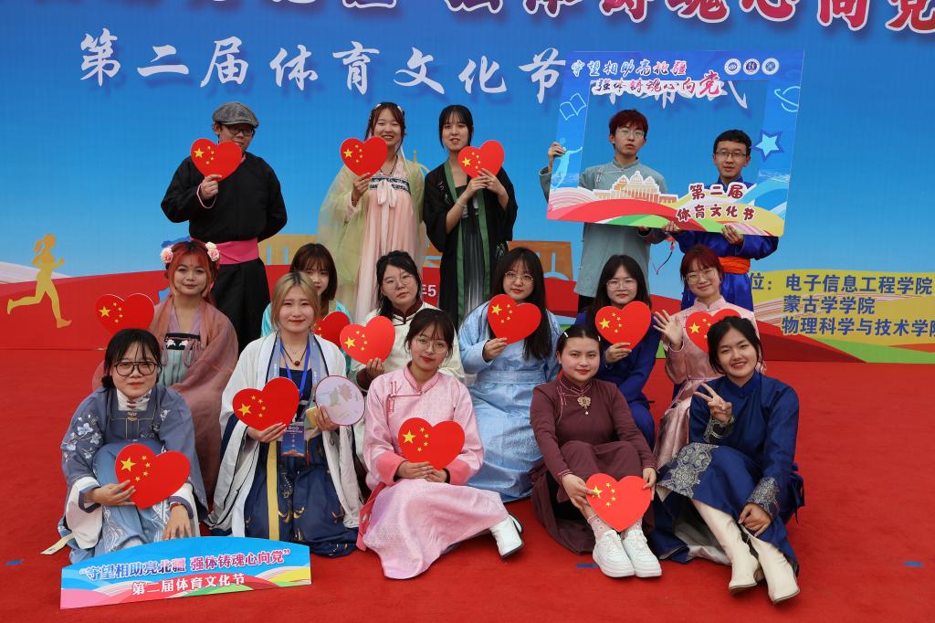 为深入开展习近平新时代中国特色社会主义思想主题教育,铸牢中华民族共同体意识,深化民族团结进步教育,促进各民族师生的交流交往交融,加强体育锻炼,增强健康体魄,发扬团结奋斗、努力拼搏的精神,bg大游集团官方网站、蒙古学公司、物理科学与技术公司联合举办的“守望相助亮北疆 强体铸魂心向党”第二届体育文化节于5月28日下午2:30在北校区田径场隆重开幕。