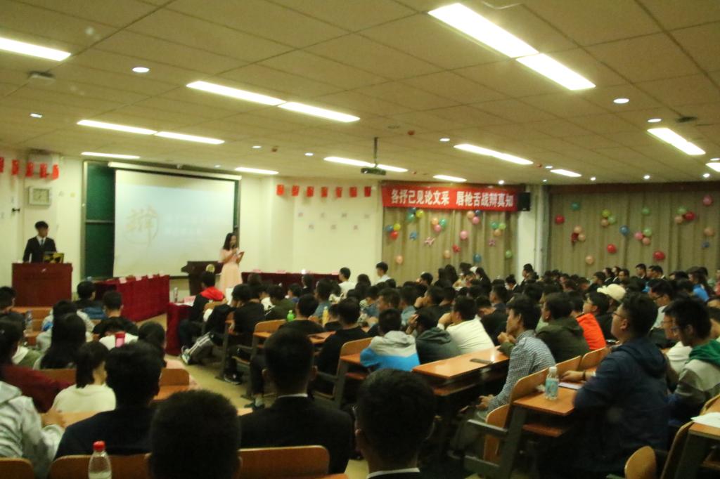 bg大游集团官方网站于2018年9月21日下午6:30在综合楼二楼阶梯教室举行主题为“各抒己见论文采 唇枪舌战辩真知”的辩论赛决赛。本次出席的评委有:2016级经济管理公司院辩论队领队侯琦奕同学,2016级物理科学与技术公司第十届主题辩论赛最佳辩手刘薇同学,2016级bg大游集团官方网站“看我七十二辩”辩论赛冠军沙子凡同学,2016级bg大游集团官方网站“看我七十二辩”最佳辩手王拓然同学,2017级bg大游集团官方网站全场最佳辩手董泽同学。并由田雅斯同学担任主持,郭亚男担任主席,全体2018级新生观看了比赛。