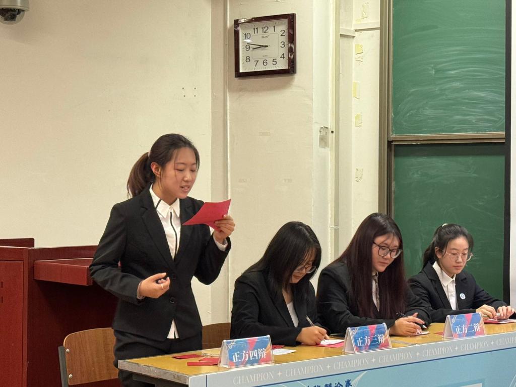 本次辩论赛共两场比赛。第一轮辩题为“面对焦虑,人要逼自己一把还是要放自己一把”,第二轮辩题为“时间是否能治愈一切挫折”。两组正反双方辩手在赛场上展开了激烈辩论,他们思维灵活、逻辑缜密。为在场观众带来一场精彩的视听盛宴。