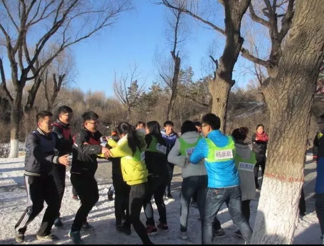 撕名牌在满都海公园举行,伴随着裁判的一声令下,各个队伍立马分散开来,开始寻找机会将对方队长的名牌撕下,胜利的队伍一起欢呼、庆祝,失败的队伍相互鼓励,安慰,游戏激烈而又和谐。看似简单的游戏,实则考验了我们的团队协作能力和凝聚力。在嗖嗖的寒风中,大家齐心协力,为了队伍的胜利拼尽全力,场面热烈而又温馨。