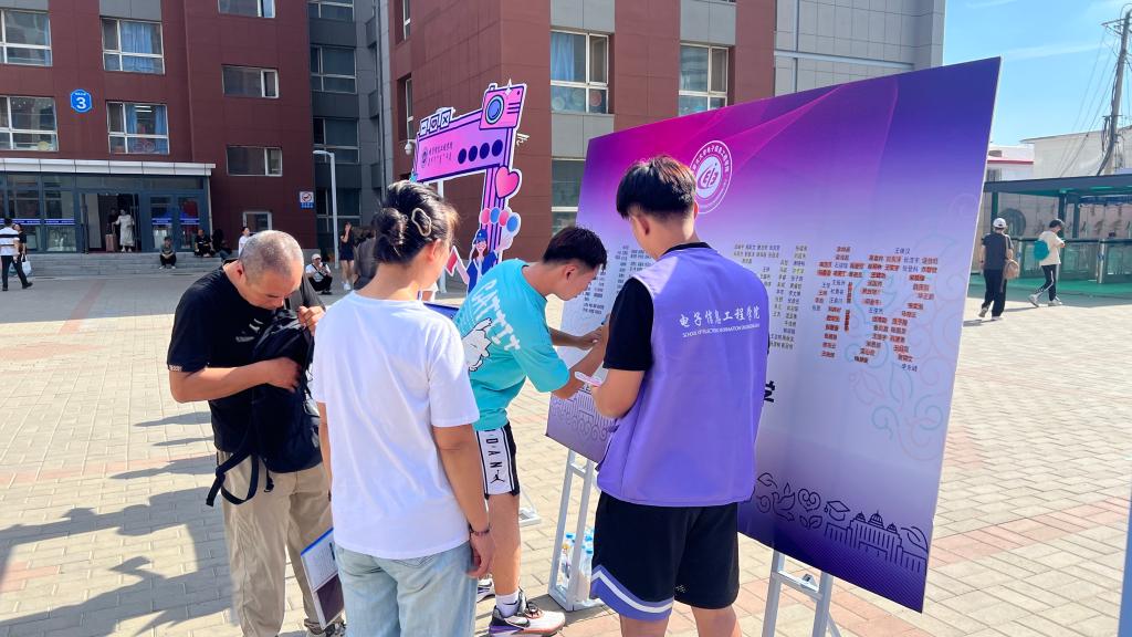 从报到注册到宿舍入住,再到熟悉校园,每一个环节都有我们“小电紫”的身影。TA们耐心细致,笑容可掬,只为让新同学们感受到家的温暖和公司的关怀。