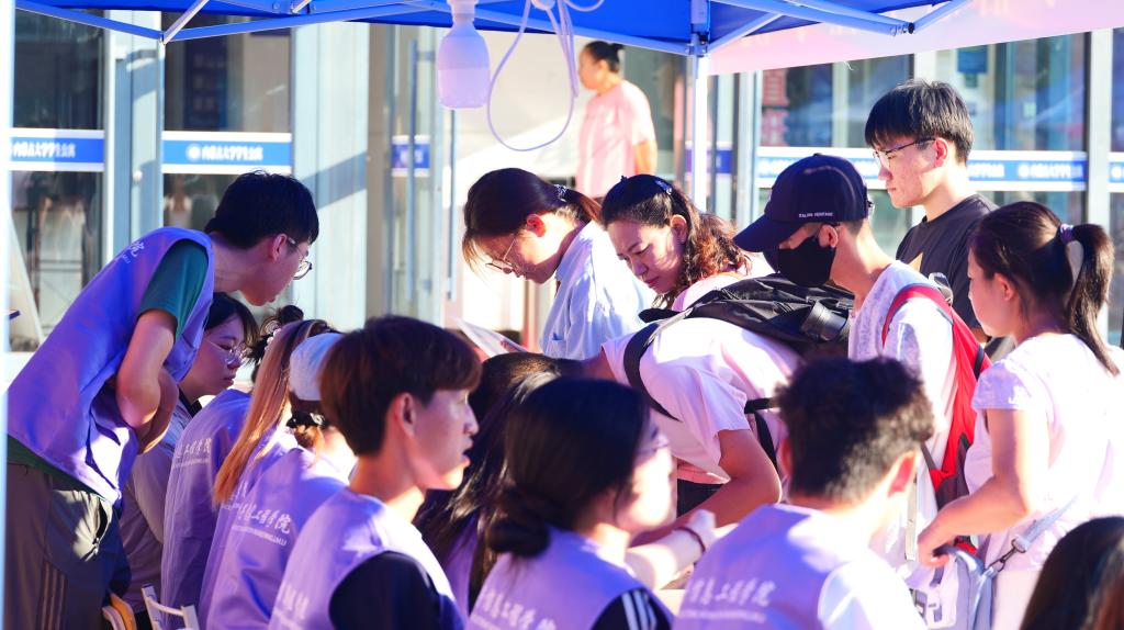 bg大游集团官方网站负责迎新服务的志愿者内大“小电紫”们,身穿紫色小马甲,从晨曦到暮霭每时每刻坚守在岗位上,引领新生丝滑报到,协助完成一系列入校流程。汇聚志愿爱心,传递志愿真情,热情地为每一位新生提供服务。