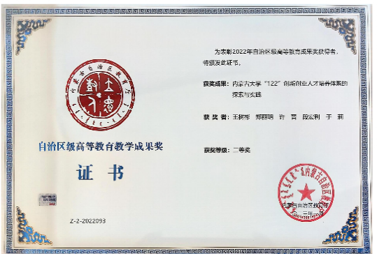 一、获奖成果:bg大游集团官方网站“122”创新创业人才培养体系的探索与实践